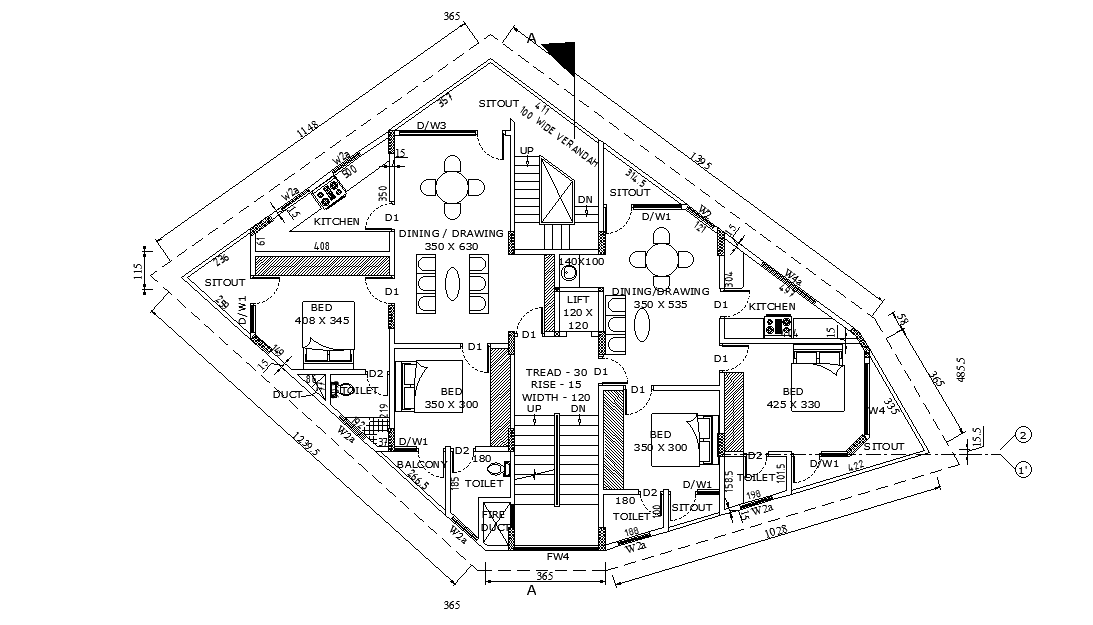 Two block apartment detail drawings provided in this AutoCAD file. Download the AutoCAD file.