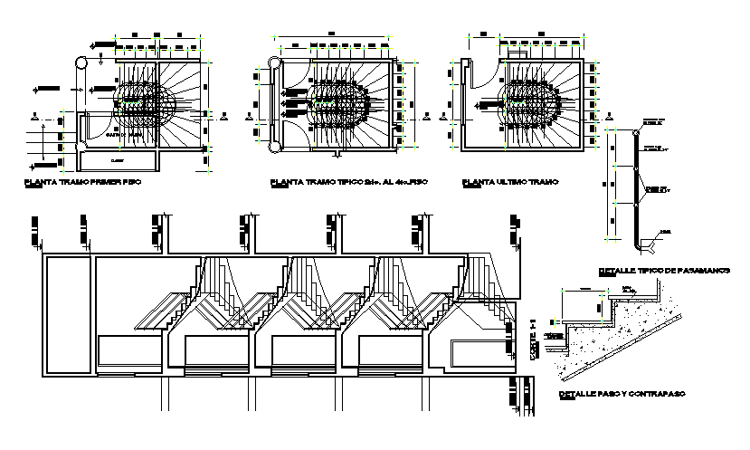 Typical section view of the staircase details are given in this Autocad drawing model. Download the Autocad drawing file.