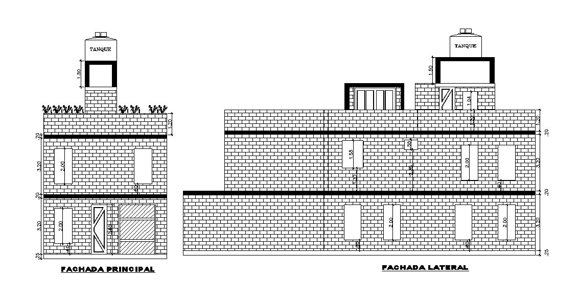 Twin bungalow Elevation of the house plan is given in this AutoCAD drawing model. Download this 2d AutoCAD drawing file.