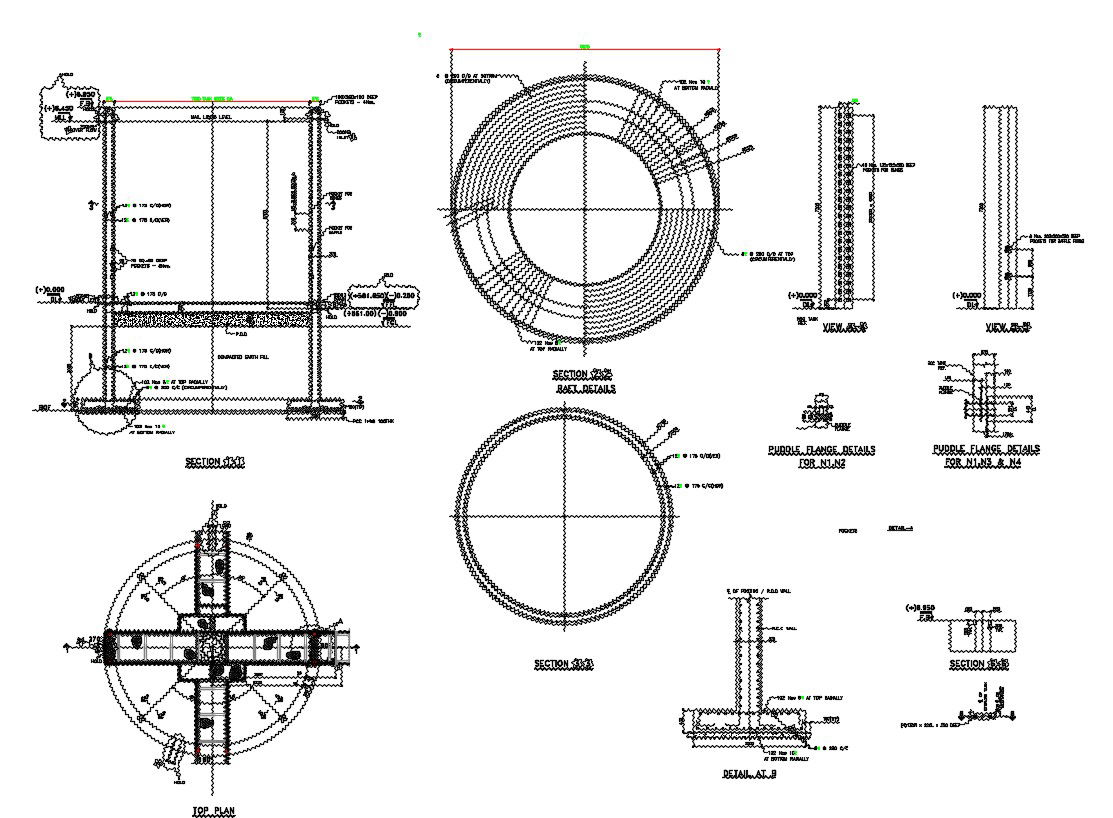 the effluent treatment plant AutoCAD drawing that shows blast furnace complex, sludge storage tank-1 size 7000 X 6700 ht. and agitator layout & details of foundation. the additional necessary arrangement shall be done at site by contractor, use concrete grade m25. unless specified otherwise, all reinforcement shall be of grade fe 500 conforming, laps and anchorages shall be maintained as 50xd. where d is diameter of bar and finished ground level with bottom of footing. Thank you for downloading the AutoCAD file and other CAD program from our website.