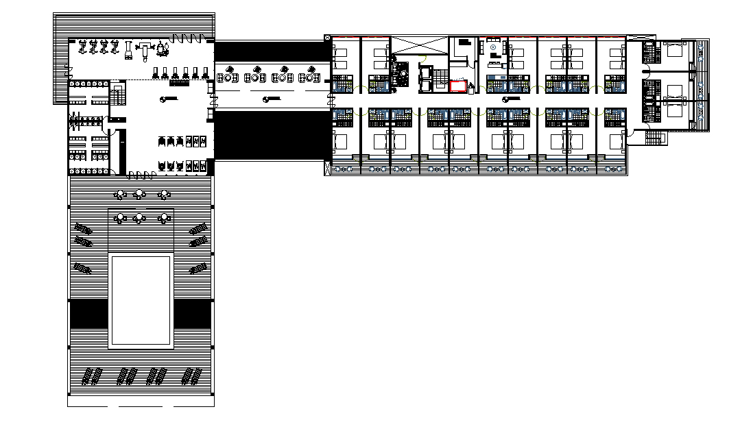 The hotel floor plan drawing derived in this AutoCAD file. Download this 2d AutoCAD drawing file.