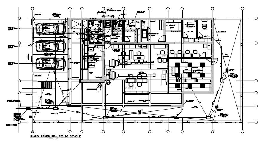 The ground floor plan of the office building provided in this 2D AutoCAD DWG drawing file. Download this 2d AutoCAD drawing file.