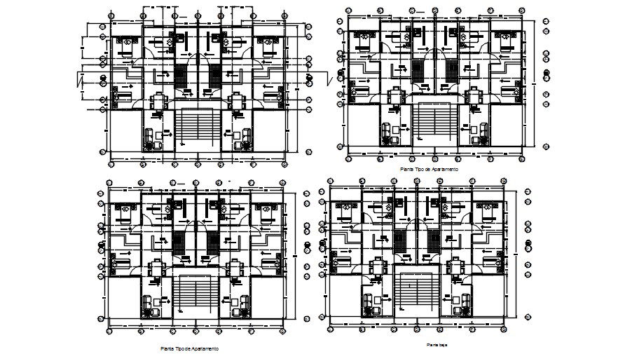 Apartment layout plan specified in this CAD drawing file. it shows 2 bedrooms, a kitchen, a dining area, and a drawing room with all furniture design. there is 3 unit house on the cluster apartment floor plan with a centerline plan and dimension detail. Thank you for downloading the AutoCAD file and other CAD programs from our website. Download this 2d AutoCAD drawing file.