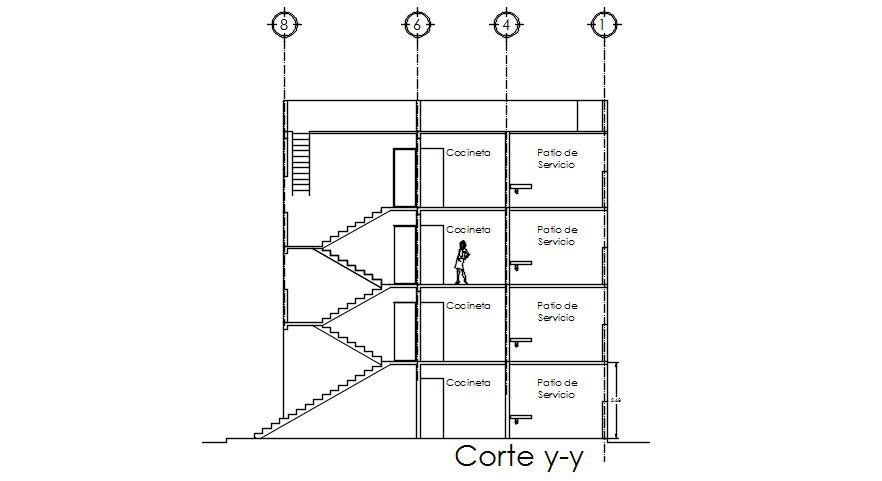 Apartment building section provided in this CAD drawing file. Download the AutoCAD drawing file.