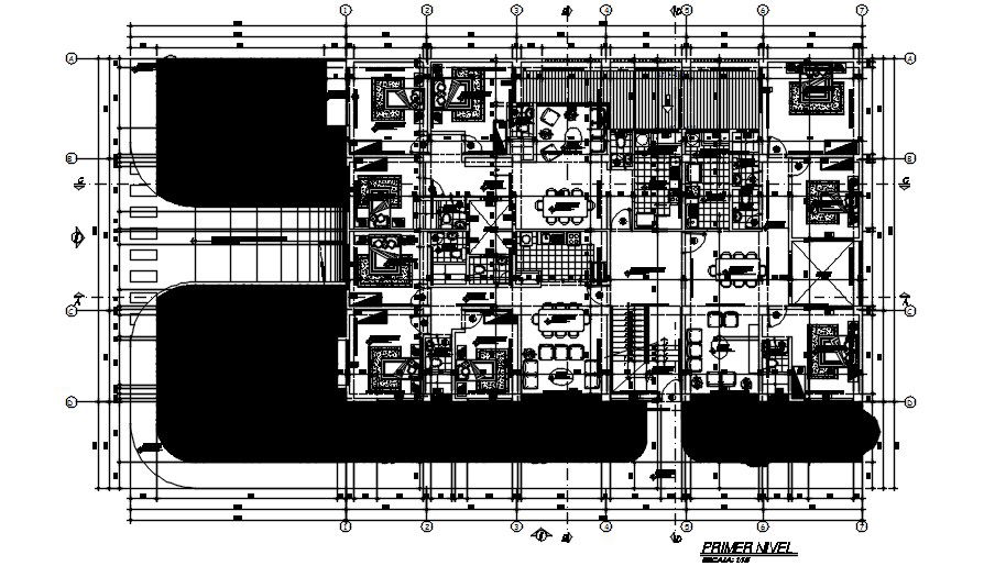 Bungalow floor plan drawing separated in this AutoCAD file. Download the AutoCAD drawing file.