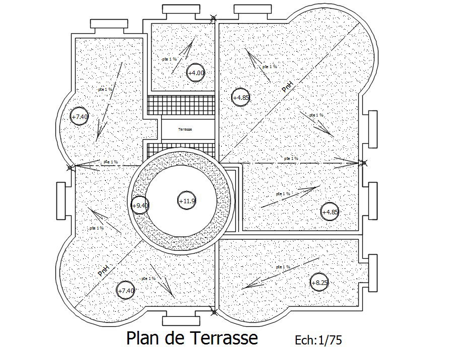 Terrace plan details separated in the form of a 2D AutoCAD file.  Download the AutoCAD drawing file.