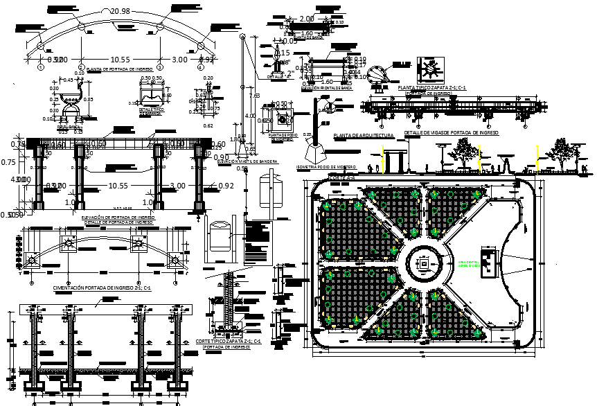 This Landscaping designs in DWG autocad File, & all structure detail & Beam Column detail with steel bar, roof detail.