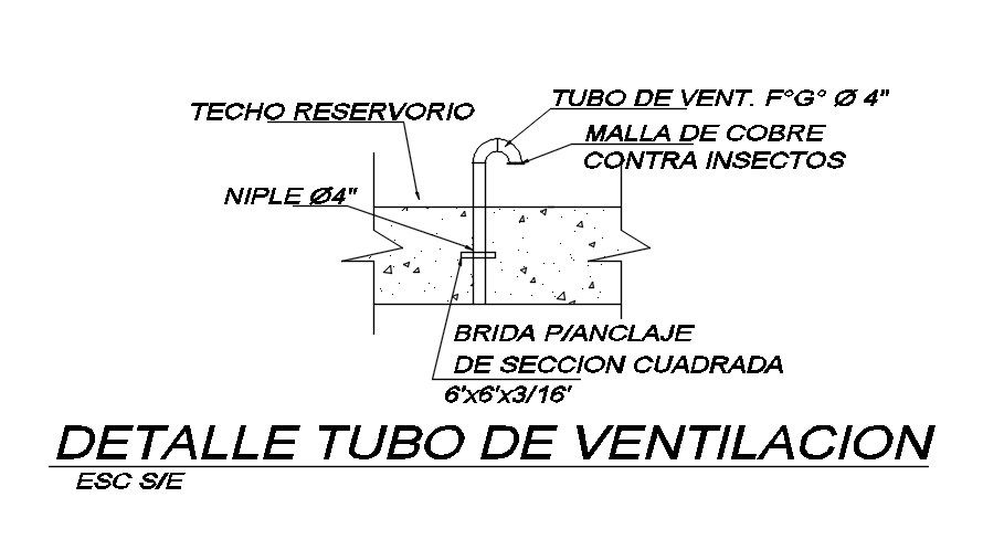 Ventilation tube detail provided in this CAD drawing file. Download the AutoCAD drawing file.