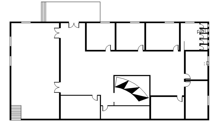 The corporate office floor plan is given in this file. Download the AutoCAD drawing file.
