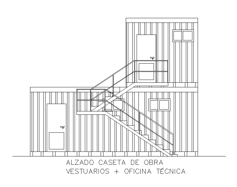 Construction booth elevation detail provided in this AutoCAD file. this file consists of door exterior elevation detail with ventilation detail given with staircase detail. this can be used by architects and engineers. Download this 2d AutoCAD drawing file.