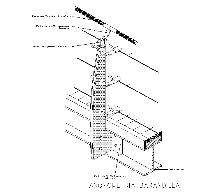 Railing axonometric detail drawing presented in this AutoCAD file. Download this 2d AutoCAD drawing file.