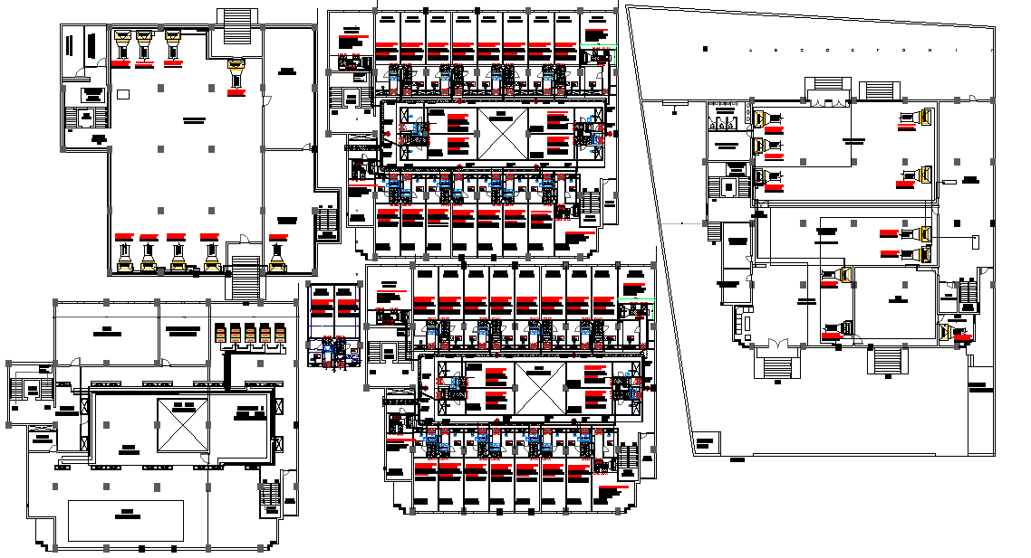 first floor , ground floor, & second floor lay-out detail. hat-2.0 tr/670 cfm 44"wx23"dx8", hs.a.grille-40"x 6", s.a.collar-32" x 6", f.a - 50 cfm, f.a.collar - 4"x6", r.a.grille- 30"x6",