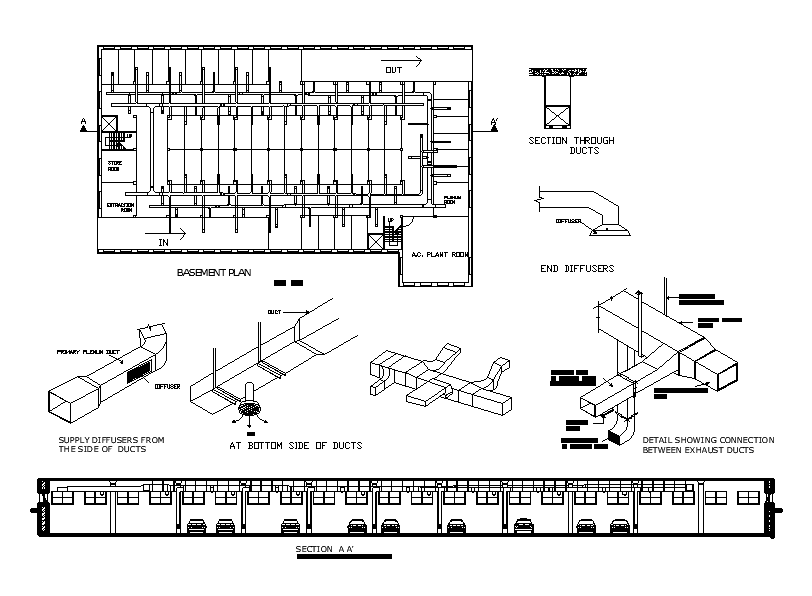 The basement floor plan provided an AutoCAD drawing file. it shows the car parking lot, ramp way, utility room, generator room, laundry, lift, and staircase detail. plot size and column layout plan drawing DWG file. Thank you for downloading the AutoCAD file and other CAD programs from our website.