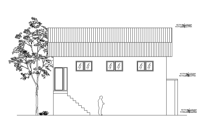 Side elevation of bungalow drawing detail presented in this cad file. Download this 2d AutoCAD drawing file.