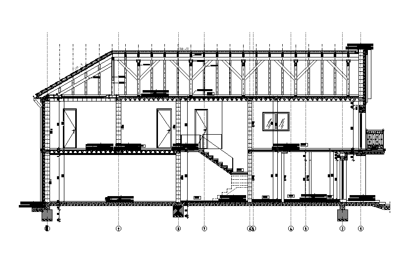 Bungalow front section detail drawing presented in this cad drawing file. Download this 2d AutoCAD drawing file.