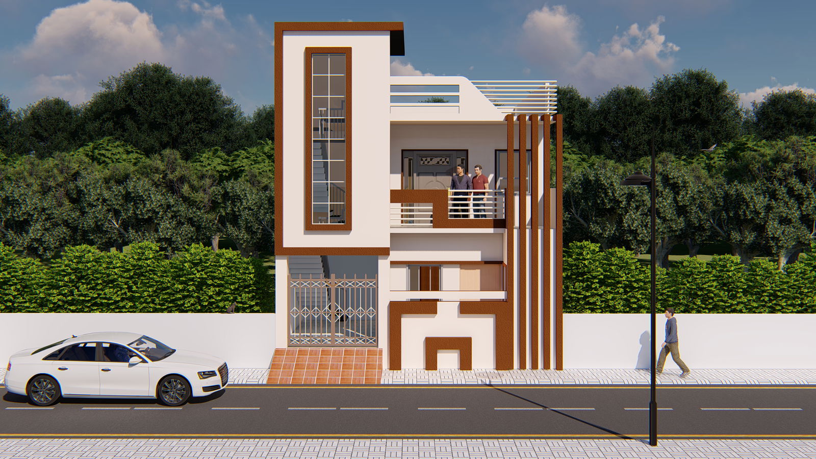 G+1 Awesome Bungalow elevation design Revit file is provided here. The two-story home elevation is given. The front elevation and Brown color front design look awesome. This drawing is useful for the people who searching for house elevation ideas, civil engineers, and architects. you can Download this drawing Revit file on cadbull.com.