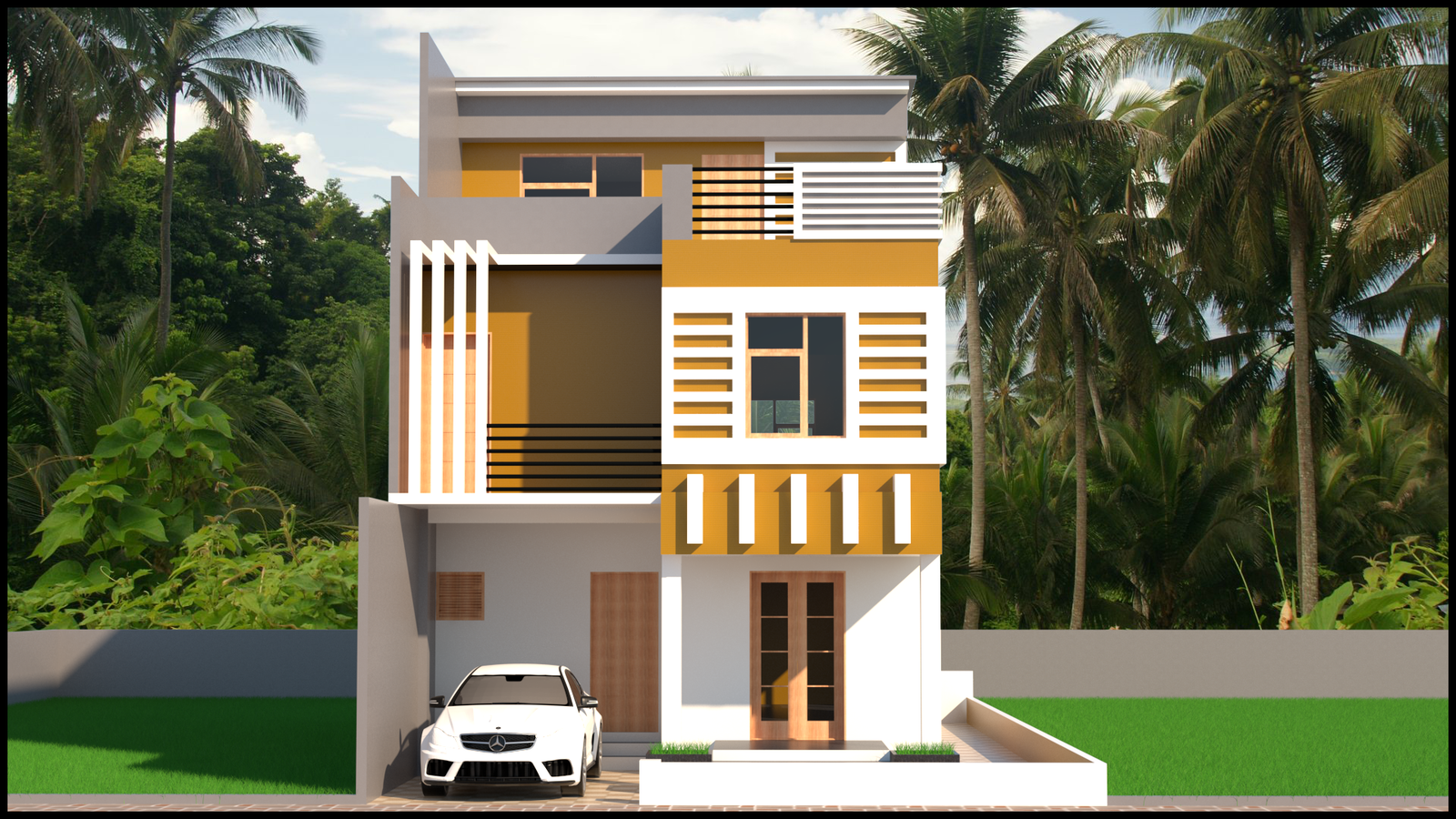 G+2 wonderful home elevation design Revit file. Download this drawing Revit file on cadbull.com.