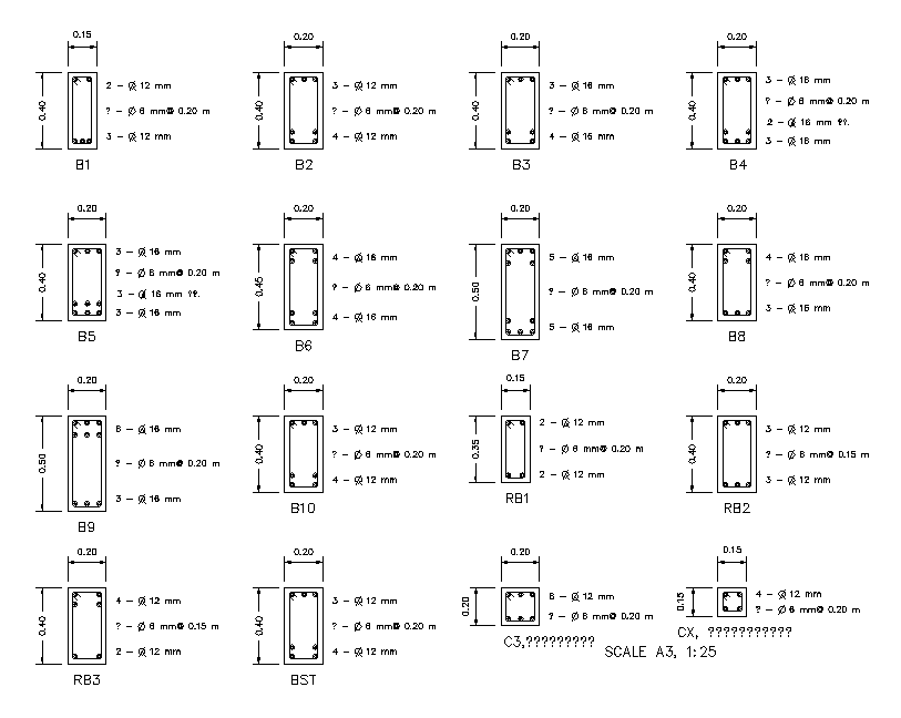 the construction AutoCAD drawing give detail of extended type upper floor beam, roof beam and