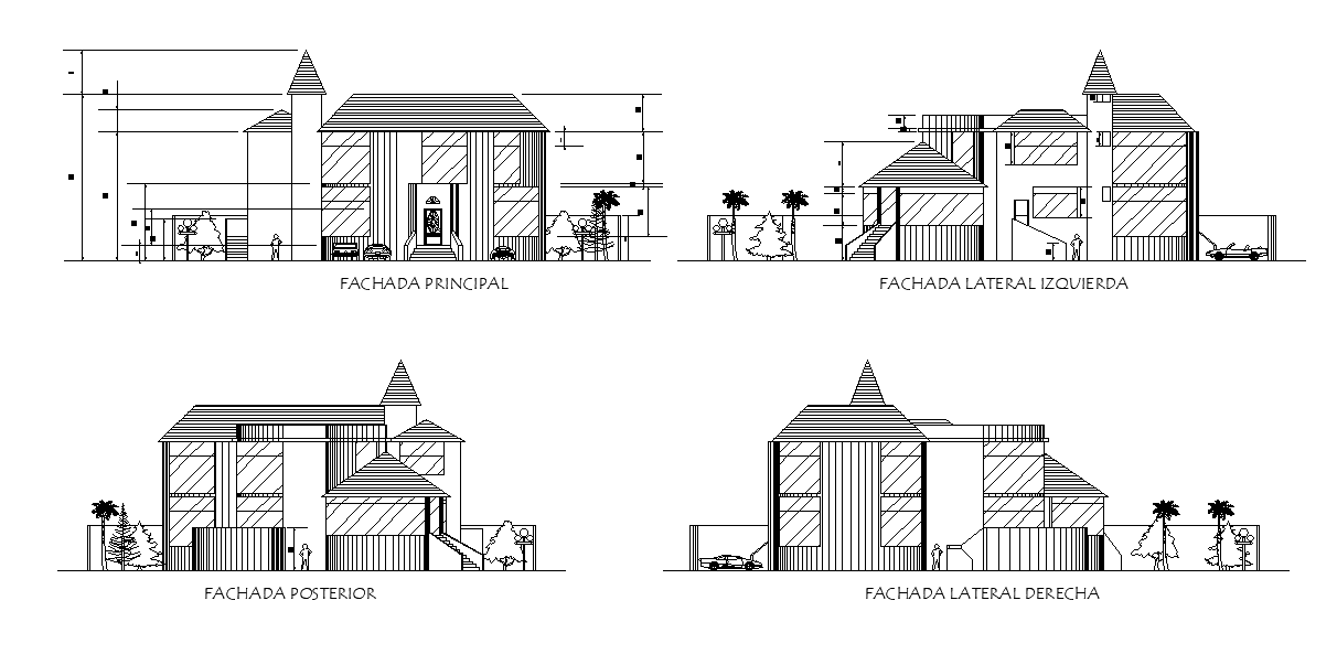 Elevation of the Luxury bungalow house plan is given in this Autocad drawing file. Download the Autocad file.