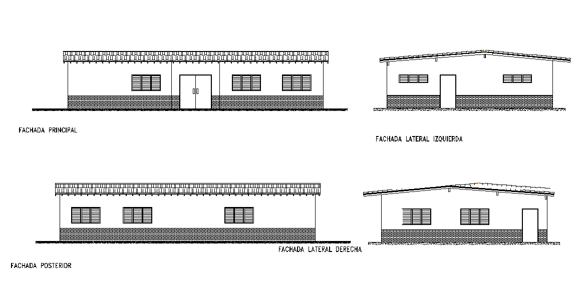Elevation of the feeding house is given in this Autocad drawing file. In this front elevation were given. Rear elevation, left side elevation and right side elevation are available in this drawing. Doors, windows, and roof levels are mentioned here. Download the Autocad drawing file. Thank you for the Autocad drawing file and other CAD program files from our website.