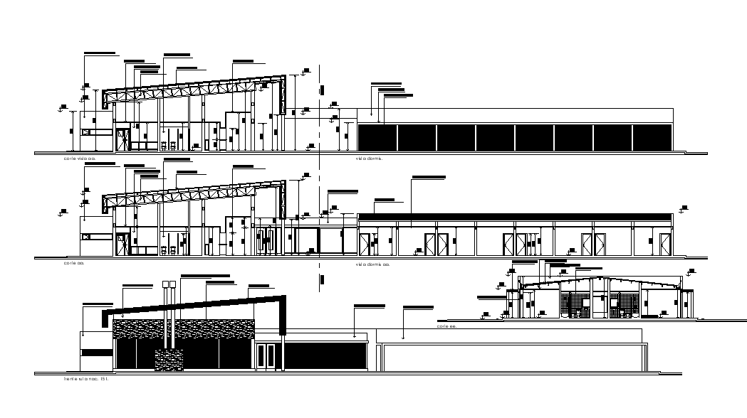 Section view of the hotel edyilberto is given in this Autocad drawing file. Total height of the building is 6.93m. Coloured plastic coating, reinforced concrete slab, coloured aluminium carpentry, coloured plastic cladding, suspended plaster ceiling, durlock ceiling, blasting natural stone cladding, metal roofing, and coloured aluminium carpentry are mentioned in this drawing model. Download the Autocad drawing file. Thank you for the Autocad drawing file and other CAD program files from our website.