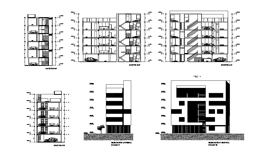 G+4 apartment building section view is given in this Autocad drawing file. Total height of the building is 17.50m. In this section view kitchen, dining room, bedrooms, water closets, lavanderia, living room and car parking are available. For more details download the Autocad drawing file. Thank you for downloading the 2D Autocad file and other CAD program files from our website.