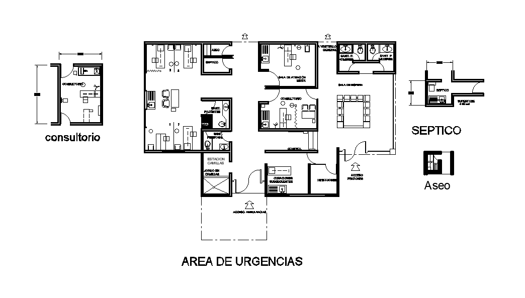 Emergency area of hospital plan is given in this Autocad drawing file. This plan is including ambulance access area. Consulting room, service room, mixed service room, waiting room, cleanliness, vestibule general, injection room, and other details are given in this Autocad drawing model. For more details download the Autocad drawing file. Thank you for downloading the 2D Autocad file and other CAD program files from our website.