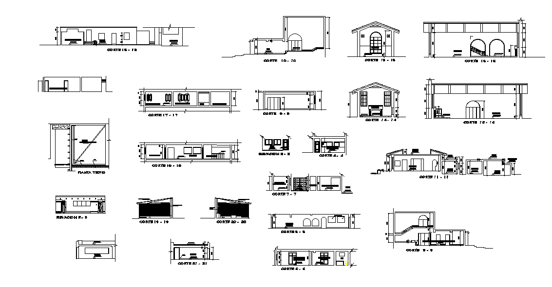 Section and roof floor of the building is given in this Autocad drawing file. Download the Autocad DWG file.