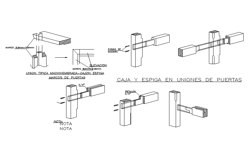 Box and tenon detail of door joint described in this 2d AutoCAD drawing file. Download this 2d AutoCAD drawing file.