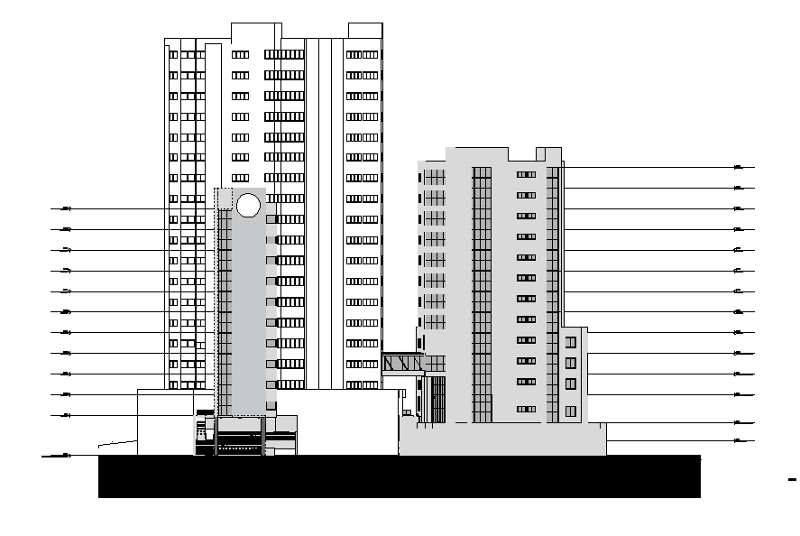 Elevation of the corporate building is available in this autocad drawing file. Download the Autocad file.