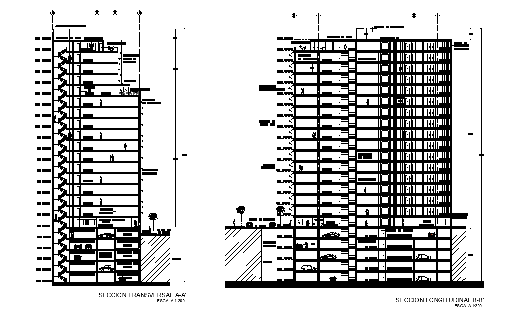 A section view of 26x24m corporate office plan is given in this Autocad DWG drawing file. Download the Autocad file.