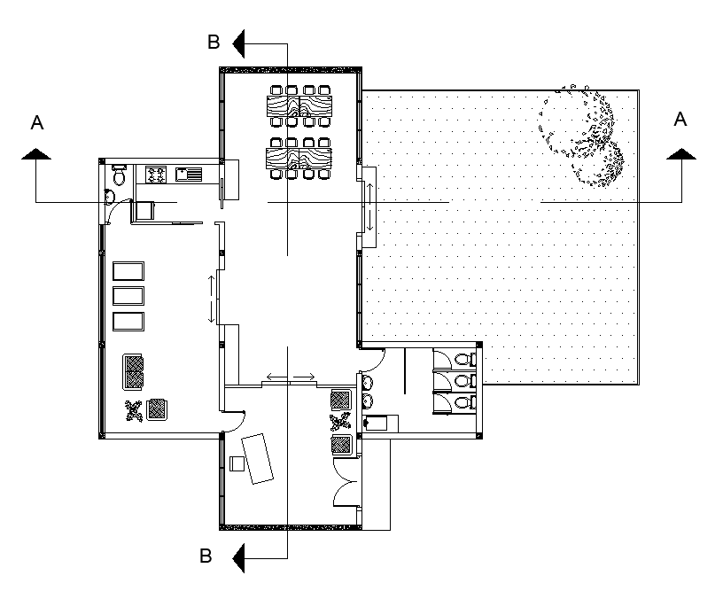 Floor plan detail drawing presented in this AutoCAD file. this file consists of a conceptual plan with utility detail, pantry detail, dining area, and waiting area given with garden area, and detailed dimensions and specifications in this AutoCAD drawing file. this can be used by architects and engineers. Download this 2d AutoCAD drawing file.
