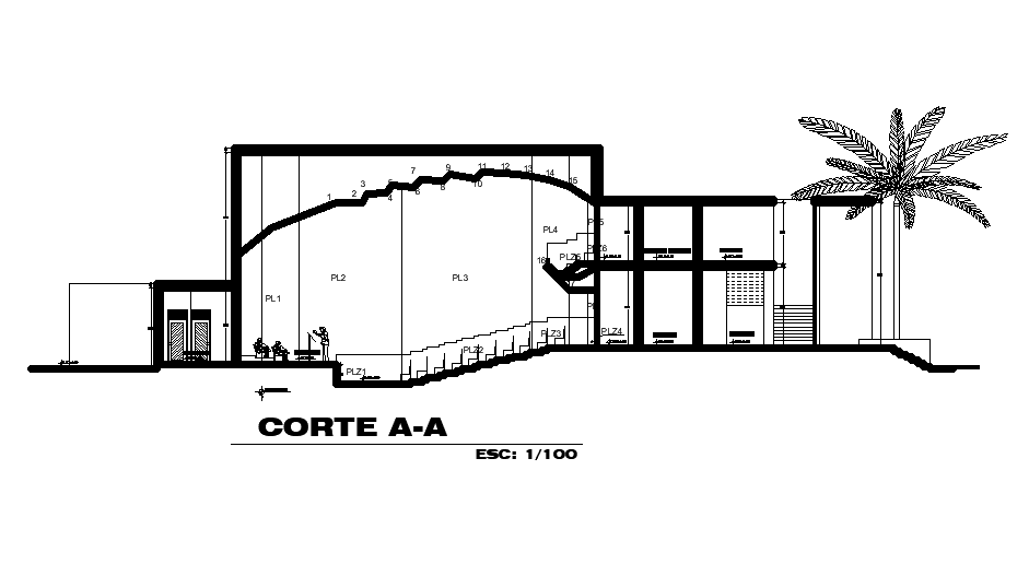 Section detail of Museum amphitheater drawing separated in this AutoCAD file. Download this 2d AutoCAD drawing file.