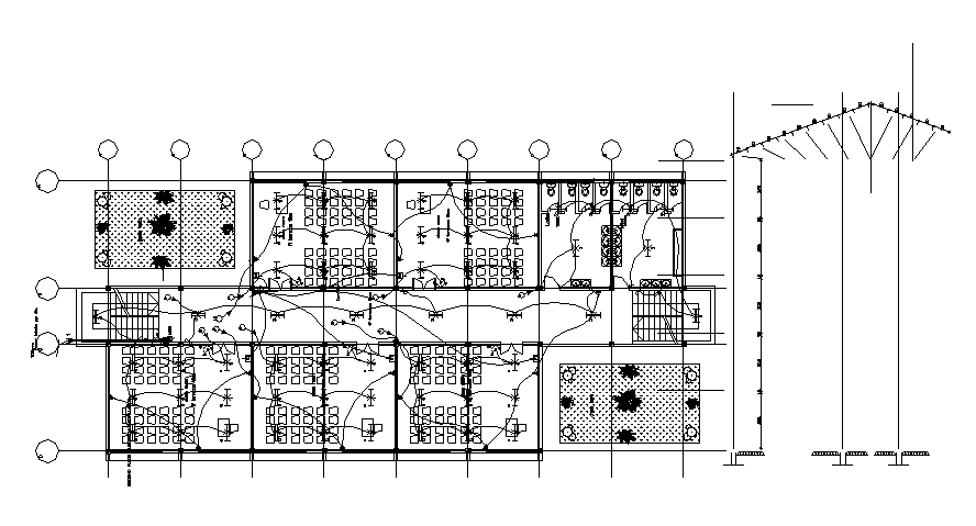 the school building electrical layout CAD drawing that shows ceiling false light and wiring detail in class rooms, toilet for girls and boys, staircase and garden. also has furniture layout and center line plan with dimension detail. Thank you for the Autocad drawing file and other CAD program files from our website.