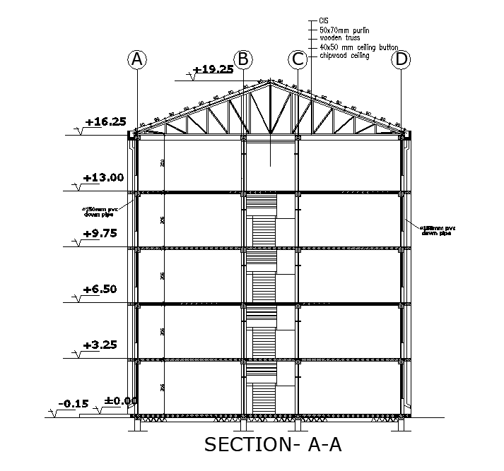 The School building section CAD drawing that shows 50x70mm purlin, wooden truss, 40x50 mm ceiling button, and wood ceiling with span roof structure and column section detail. Thank you for downloading the AutoCAD file and other CAD program from our website.