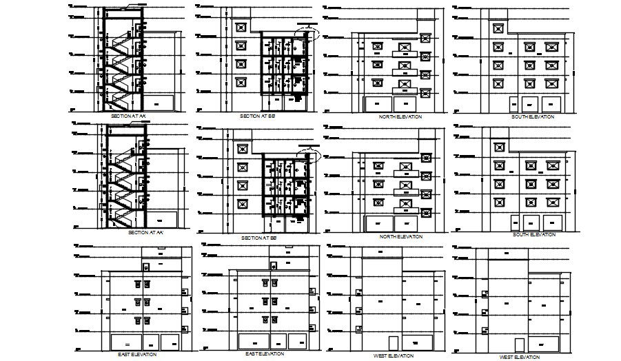 An elevation of the G+3 house building is given in this Autocad drawing file. The section view of the building is given. The total height of the building is 16.20m. Children’s bedroom, passage, master bedroom, sunken for toilet, and other details are given in this drawing model. South side elevation, north, west & east elevations are given. For more details download the Autocad drawing file. Thank you for downloading the Autocad drawing file and other CAD program files from our website.