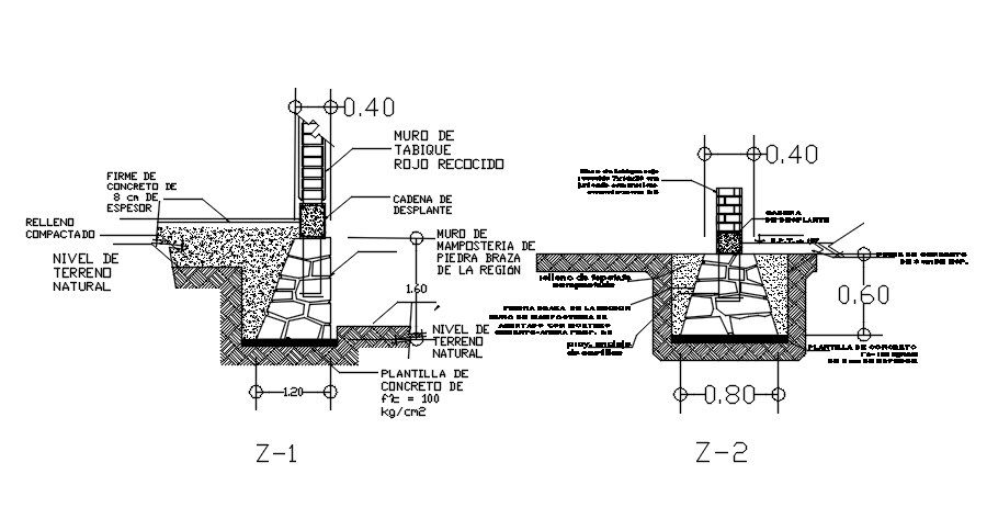 Laboratory construction details are given in this autocad drawing file. Natural terrain level is given in this drawing. Compacted filling, concrete signature of 8 cm thick, seat wall red annealed, desplant chain, stone masonry wall arm of the region, concrete template of f´c = 100 kg / cm2 and other details are given in this drawing. For more details download the Autocad drawing file. Thank you for downloading the Autocad drawing file and other CAD program files from our website.