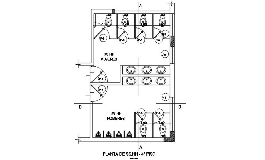 Toilet detail of the college building is given in this Autocad drawing file. Download the Autocad file.