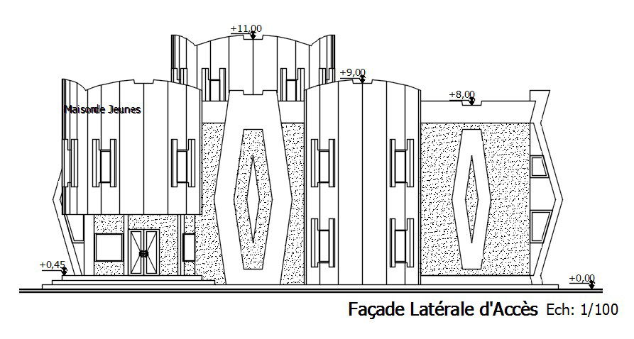 Elevation of the college plan is given in this Autocad drawing file. Download the Autocad file.