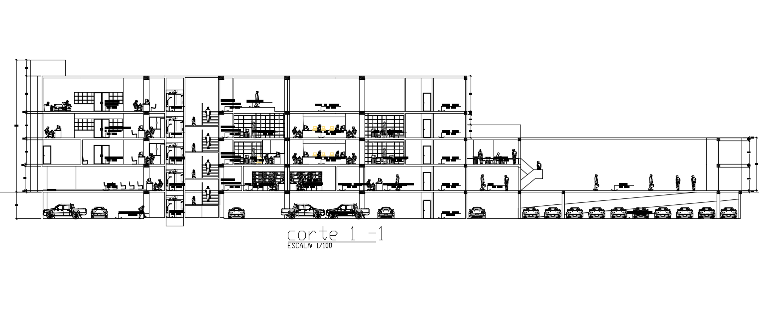 The tax administration building section cad drawing which includes cross furniture detail such as a attention platform, head of emergencies office, intelligent control room, toilet, and reception area. the total 15 meter height of building detail. Thank you for downloading the AutoCAD file and other CAD program from our website.