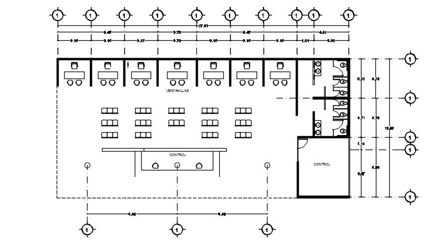 Seating arrangement of 51x14m office plan is given in this autocad drawing file. ThisDownload the Autocad file.