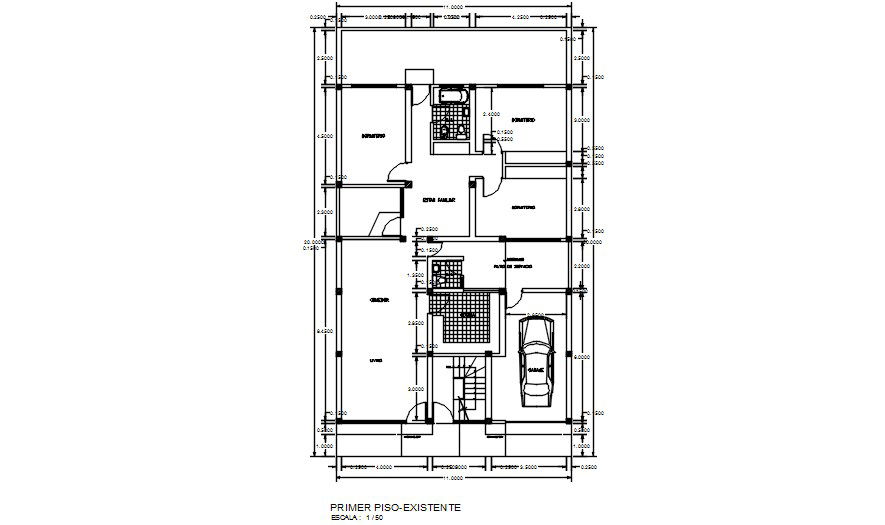 Single floor plan of 11x20 residential building plan is given in this Autocad drawing file. This is G+2 floors residential building. In each floor three houses are available. Master bedroom with attached toilet, guest bedroom, kid’s room with attached toilet, common bathroom, kitchen, dining, living area, are available in the ground floor. Thank you for downloading the Autocad file and other CAD program files from our website.