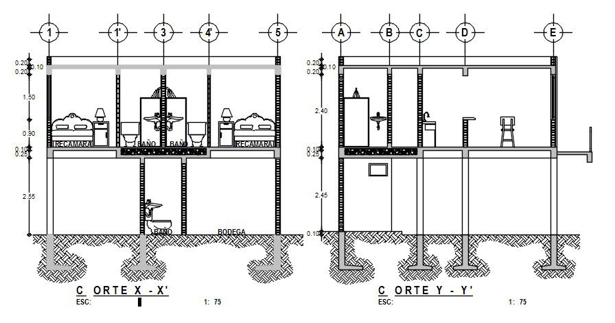 A section view of 8x8m duplex house plan is available in this Autocad drawing file.Download the Autocad file now.