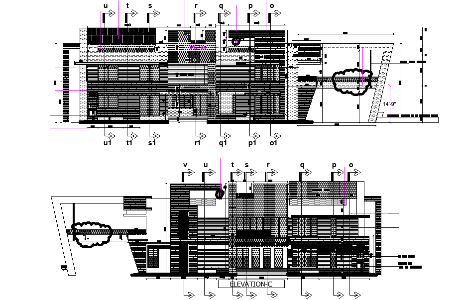 Elevation of corporate building is available in the Autocad drawing file. Download the Autocad drawing file.