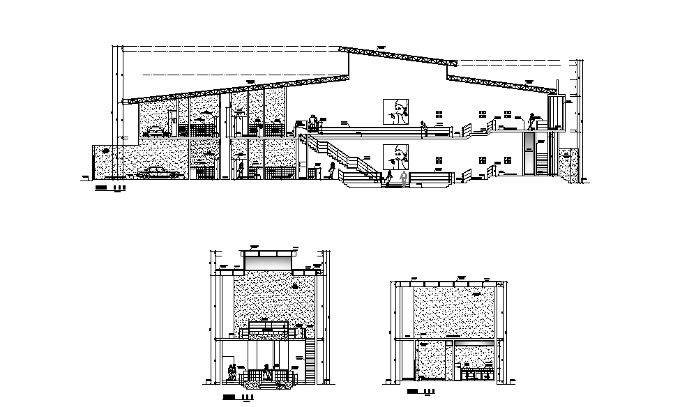 Section detail of 50x10m club house plan is given in this Autocad drawing file. Download the Autocad drawing file.