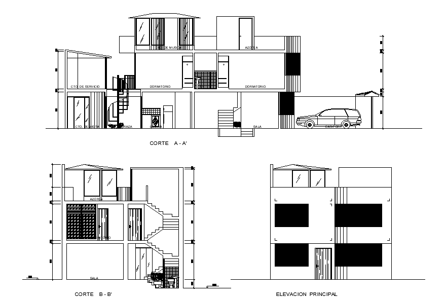 G+2 luxury villa section view is presented in this Autocad drawing model. Download the Autocad drawing file.
