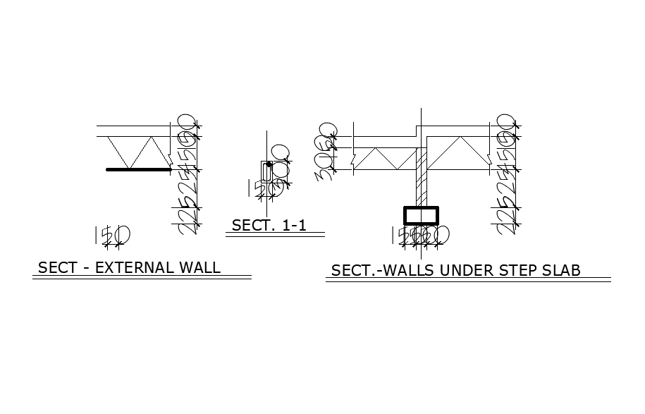 Section view of the external wall is given in this Autocad drawing model. A section of wall under step slab is given in this model. Thickness of external wall is 150mm. Thickness of slab is 150mm. 20x18m house plan is presented in this Autocad 2D drawing file. For more details download the Autocad drawing file. Thank you for downloading the Autocad file and other CAD program files from our website.