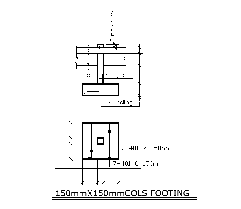 Footing details of 20x18m house plan is given in this Autocad drawing model. 150x150mm footing detail is given. For more details download the Autocad drawing file. Thank you for downloading the Autocad file and other CAD program files from our website.