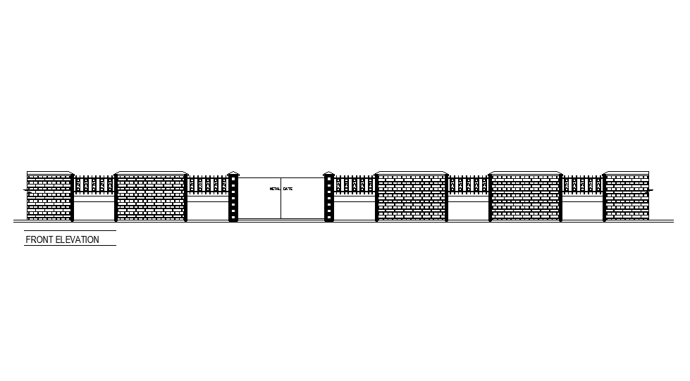 Front elevation of the brick work of boundary wall is given in this Autocad drawing file. Download the Autocad file.