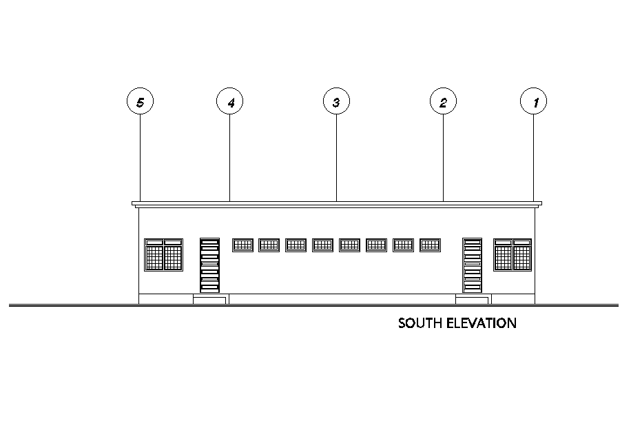 South elevation of 18x11m office canteen building is given in this Autocad drawing file. Download now.
